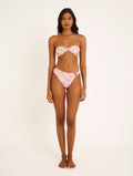 Top: tie-front triangle top with removable cups and a gold back clasp.