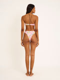 Bottom: high-rise, high-leg bikini bottoms with a gold side ring.