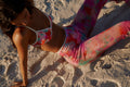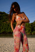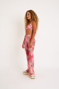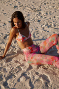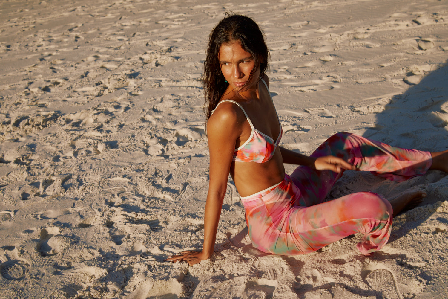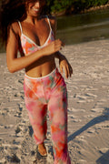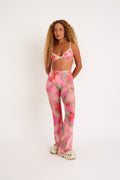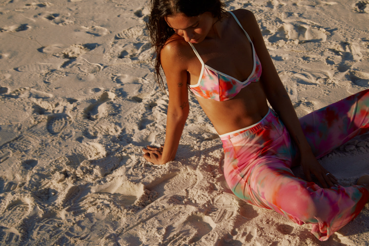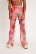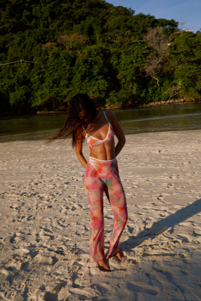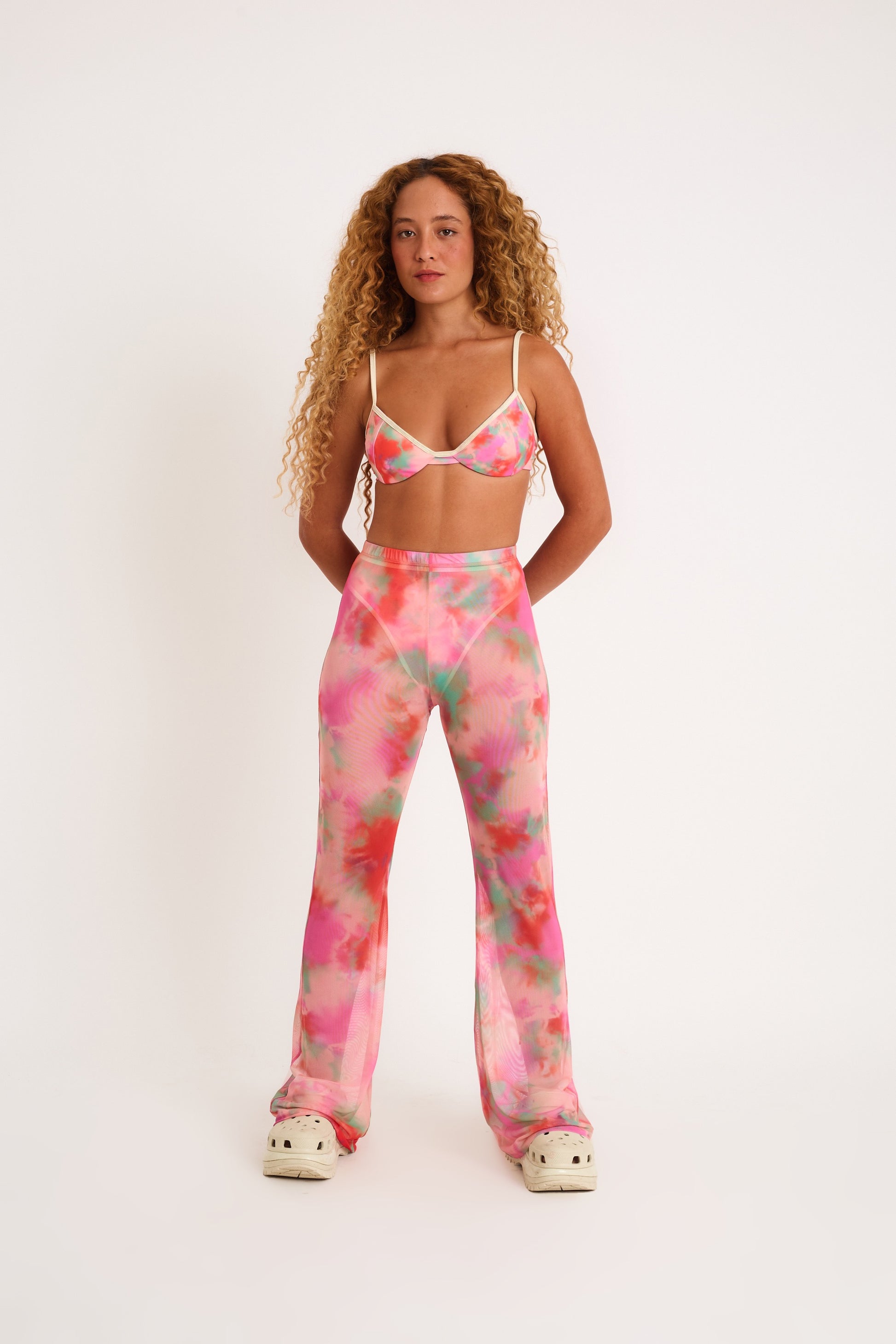 Estampado tie dye en tonos de verde, rosa y marrón.
