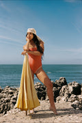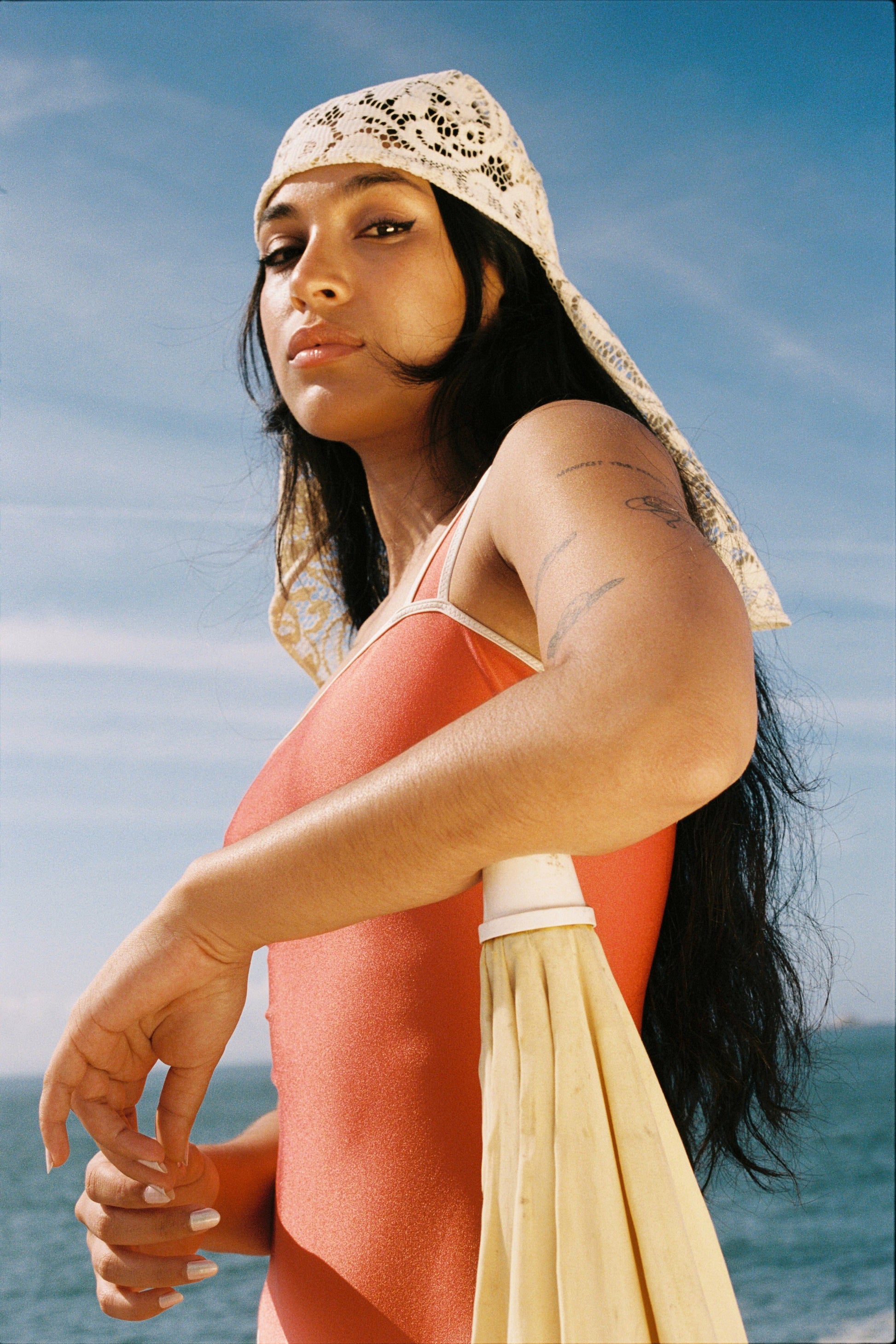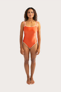 Fato de banho em formato body, com viés à volta e copas amovíveis.